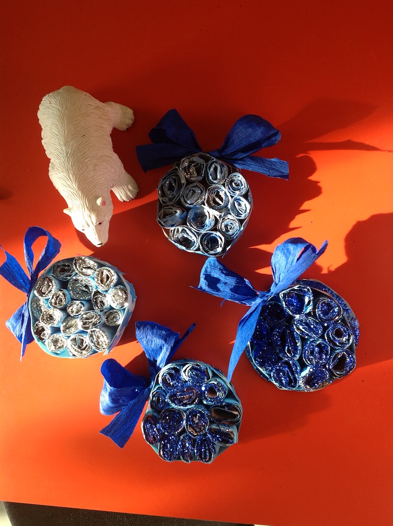 Mostriamo alcuni lavoretti eseguiti dai bambini per il Natale; di seguito una gallery fotografica che mostra come realizzarli passo dopo passo. I materiali sono di recupero, carta di ogni genere, grucce in ferro, carta stagnola, pigne, ogni cosa può avere una nuova vita, con la fantasia tutto si trasforma...